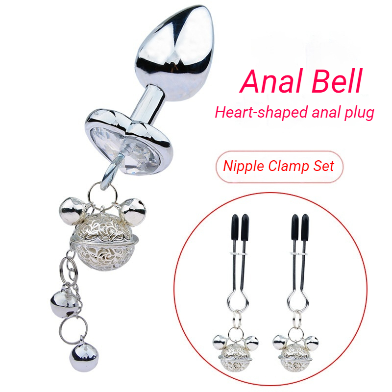 Metal Anal Plug with Bell BDSM Adult Toy for Beginners and Experienced Users Sensual Play Kit with Nipple Clamps and Butt Expansion Training Set