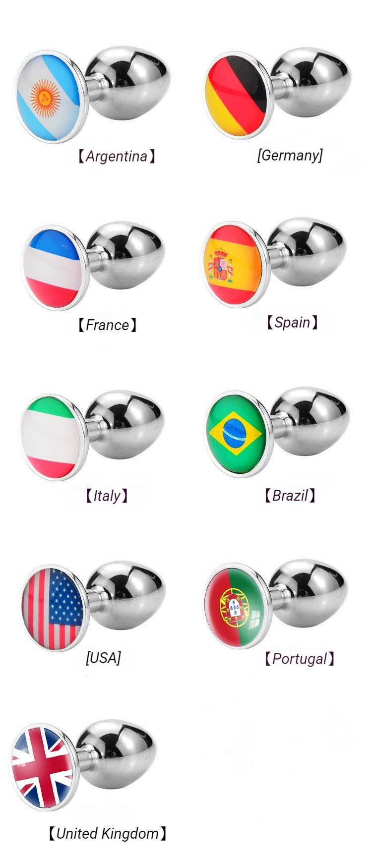 World Cup National Flag Pattern Butt Plug with Glass Rhinestones Adult Novelty Intimate Toy for Sensual Play