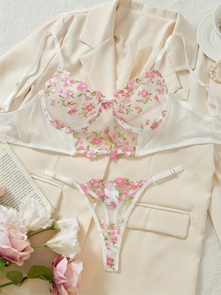 Sexy Lingerie Set White Floral Lace Babydoll Teddy with G-String and Bra for Women Romantic Intimate Wear